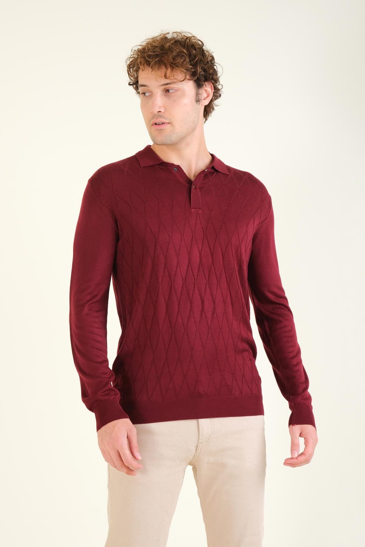 Erkek Baklava Desenli Polo Yaka Merserize Kazak Bordo (4420000253903)