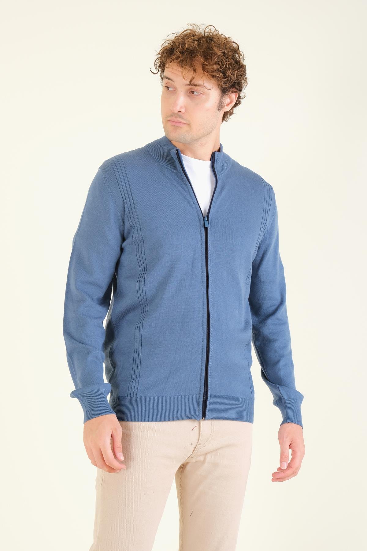 Erkek Biyeli Dik Yaka Fermuarlı Hırka İndigo