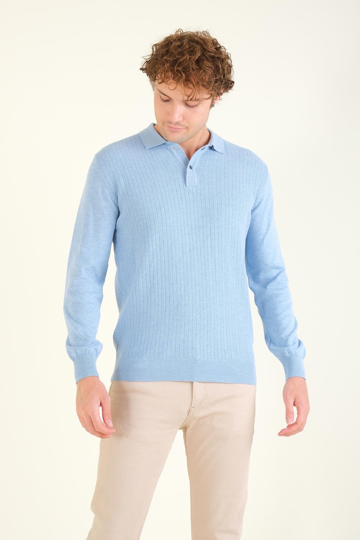 Erkek Desenli Polo Yaka Kazak Açık Mavi