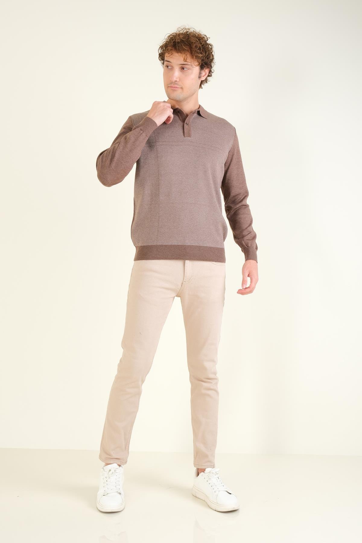Erkek Desenli Polo Yaka Kazak Kahverengi