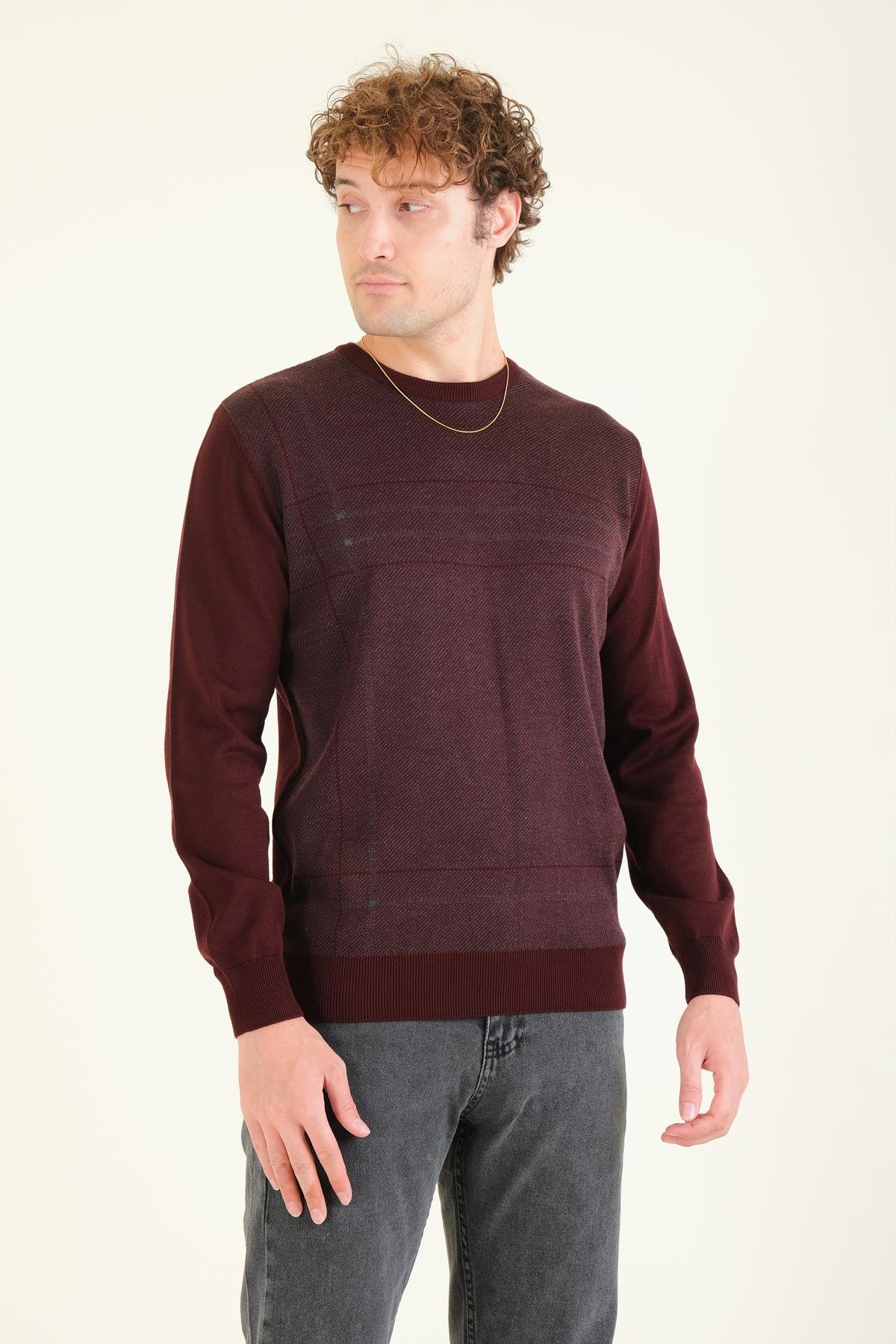 Erkek Desenli Sıfır Yaka Kazak Bordo