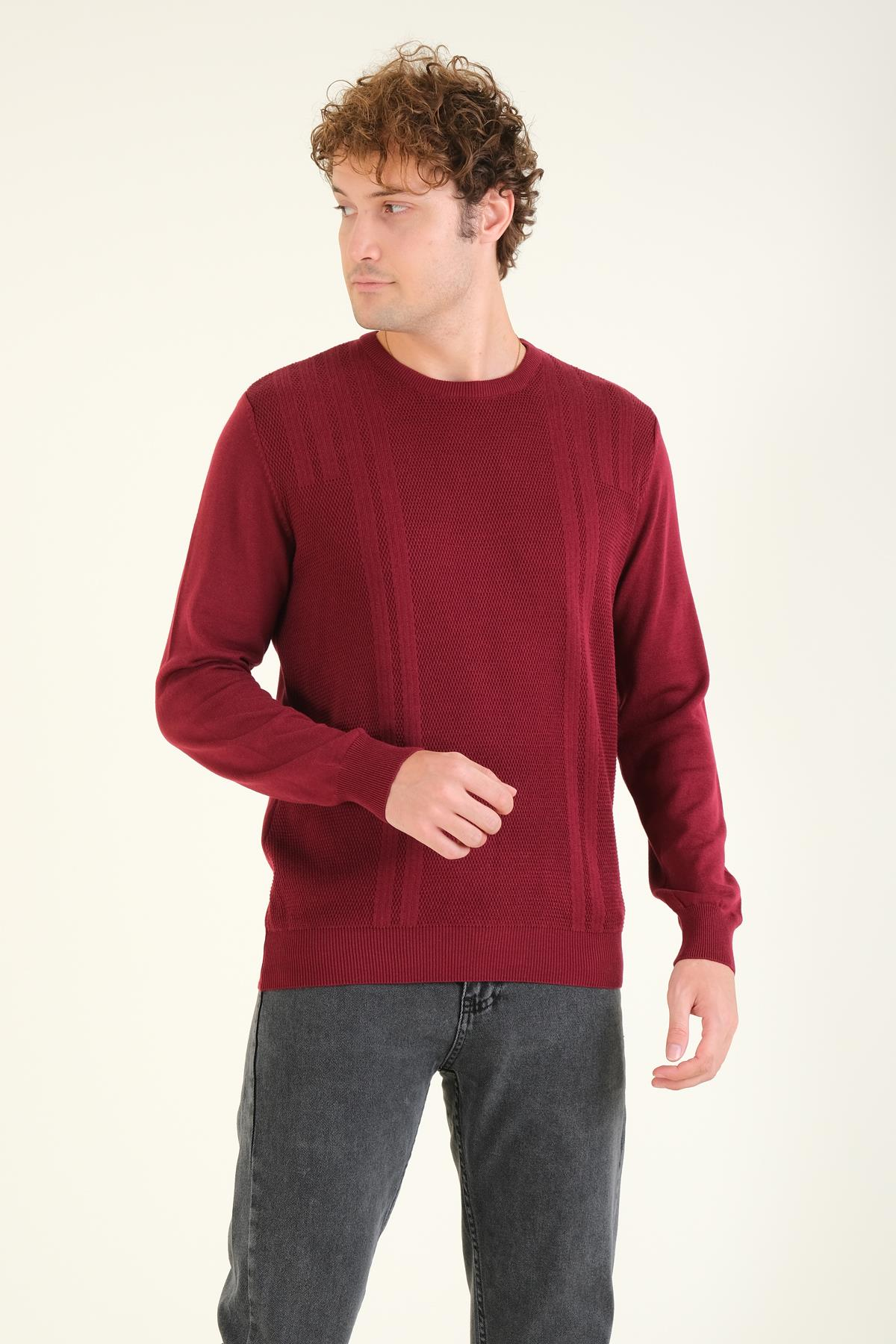 Erkek Desenli Sıfır Yaka Kazak Bordo