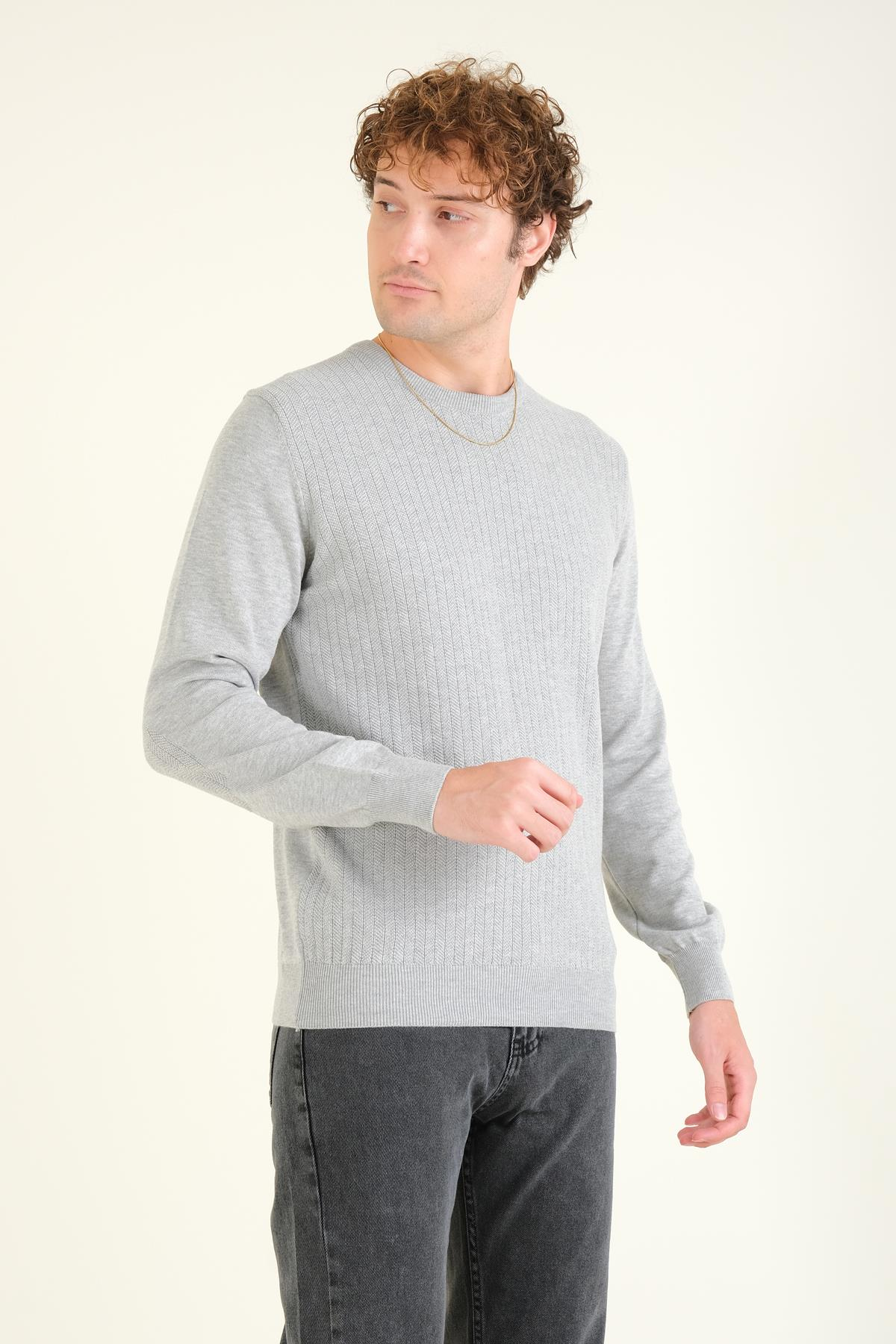 Erkek Desenli Sıfır Yaka Kazak Gri (4420000254221)