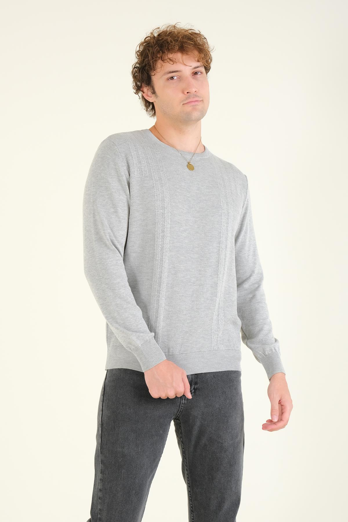 Erkek Desenli Sıfır Yaka Kazak Gri