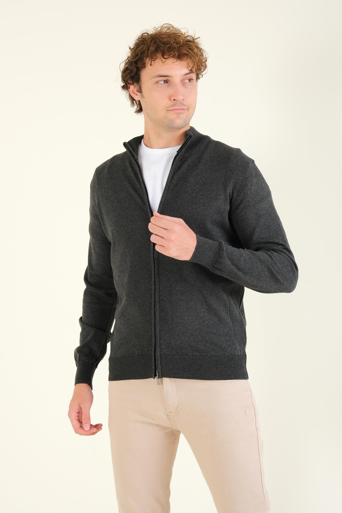 Erkek Dik Yaka Fermuarlı Hırka Antrasit