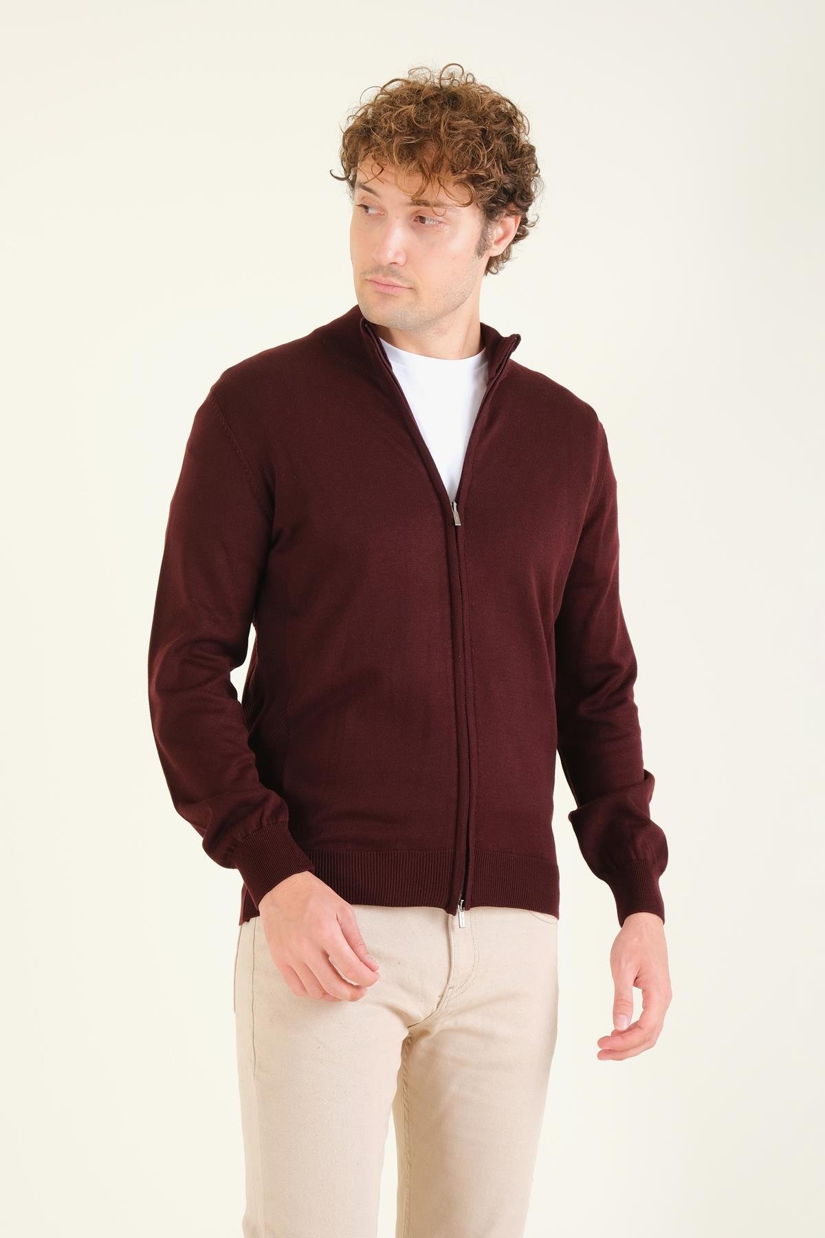 Erkek Dik Yaka Fermuarlı Hırka Bordo