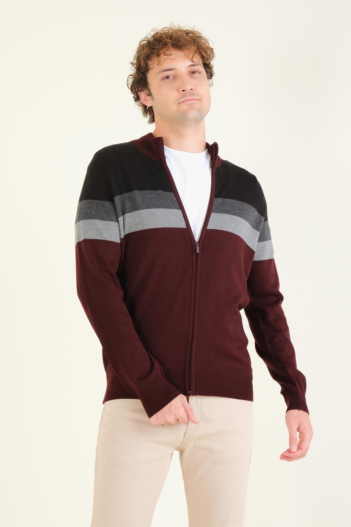 Erkek Dik Yaka Fermuarlı Renki Hırka Bordo
