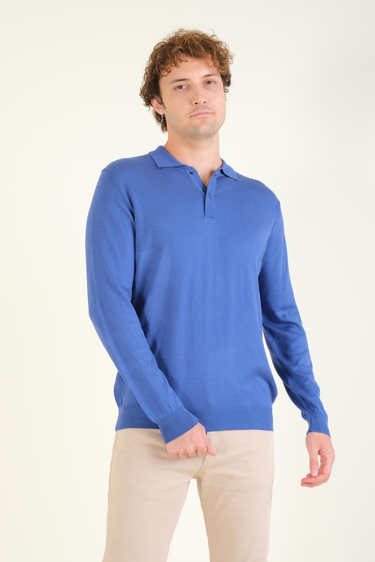 Erkek Düğmeli Polo Yaka Kazak İndigo (4420000255426)