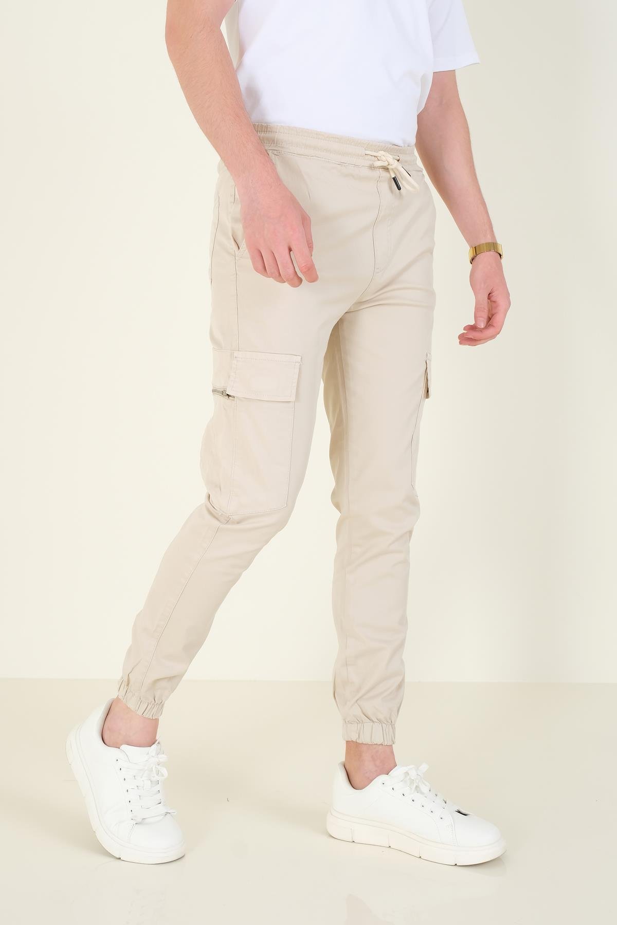 Erkek Kargo Cep Paça Lastikli Pantolon Taş (4420000251312)