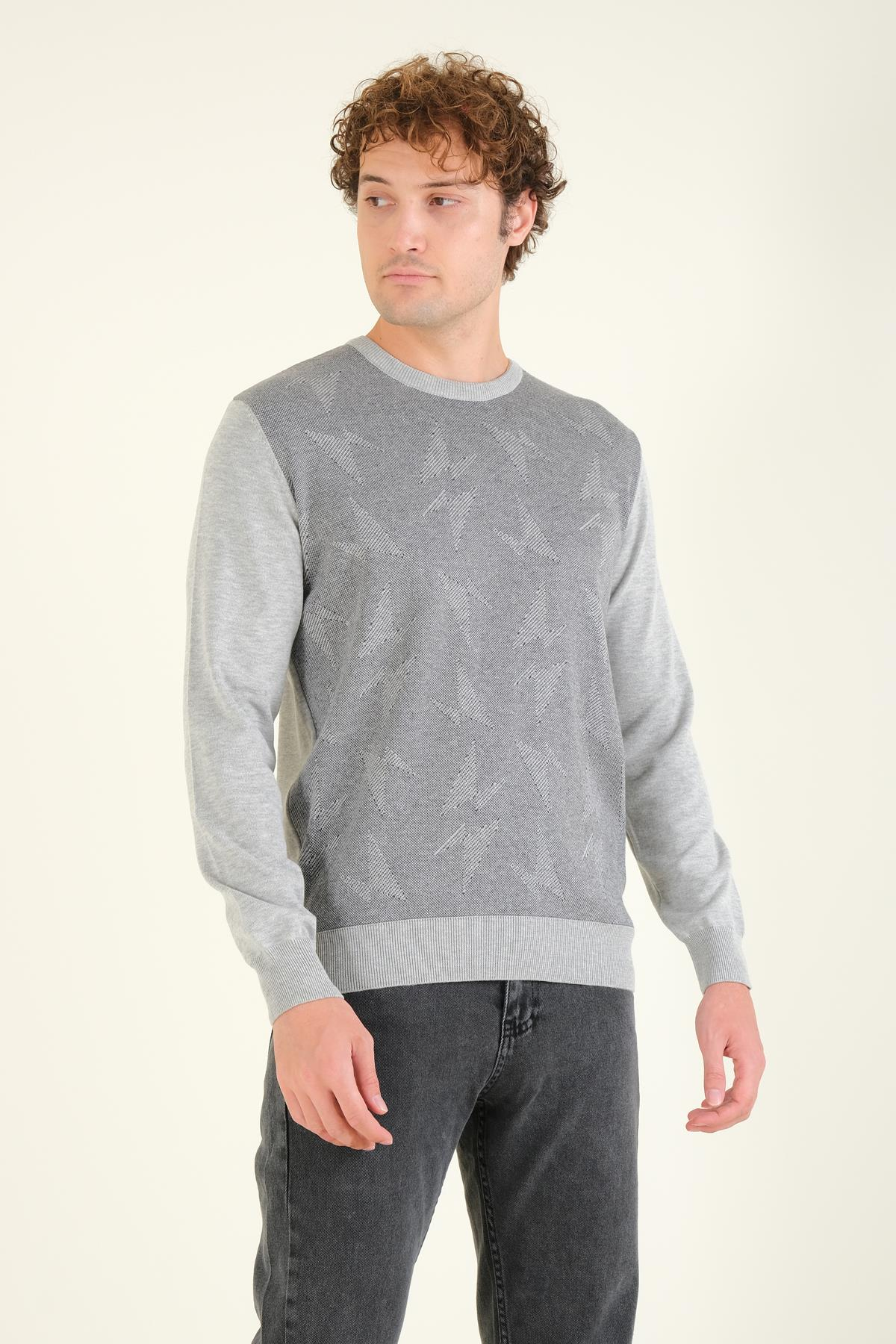 Erkek Kendinden Desenli Sıfır Yaka Kazak Gri