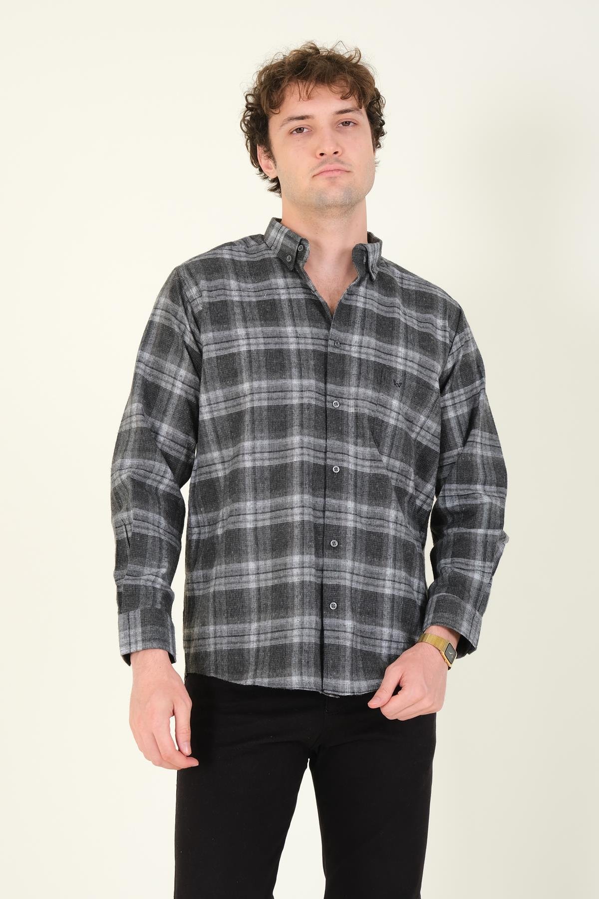 Erkek Tek Cep Ekose Desenli Kışlık Gömlek Antrasit