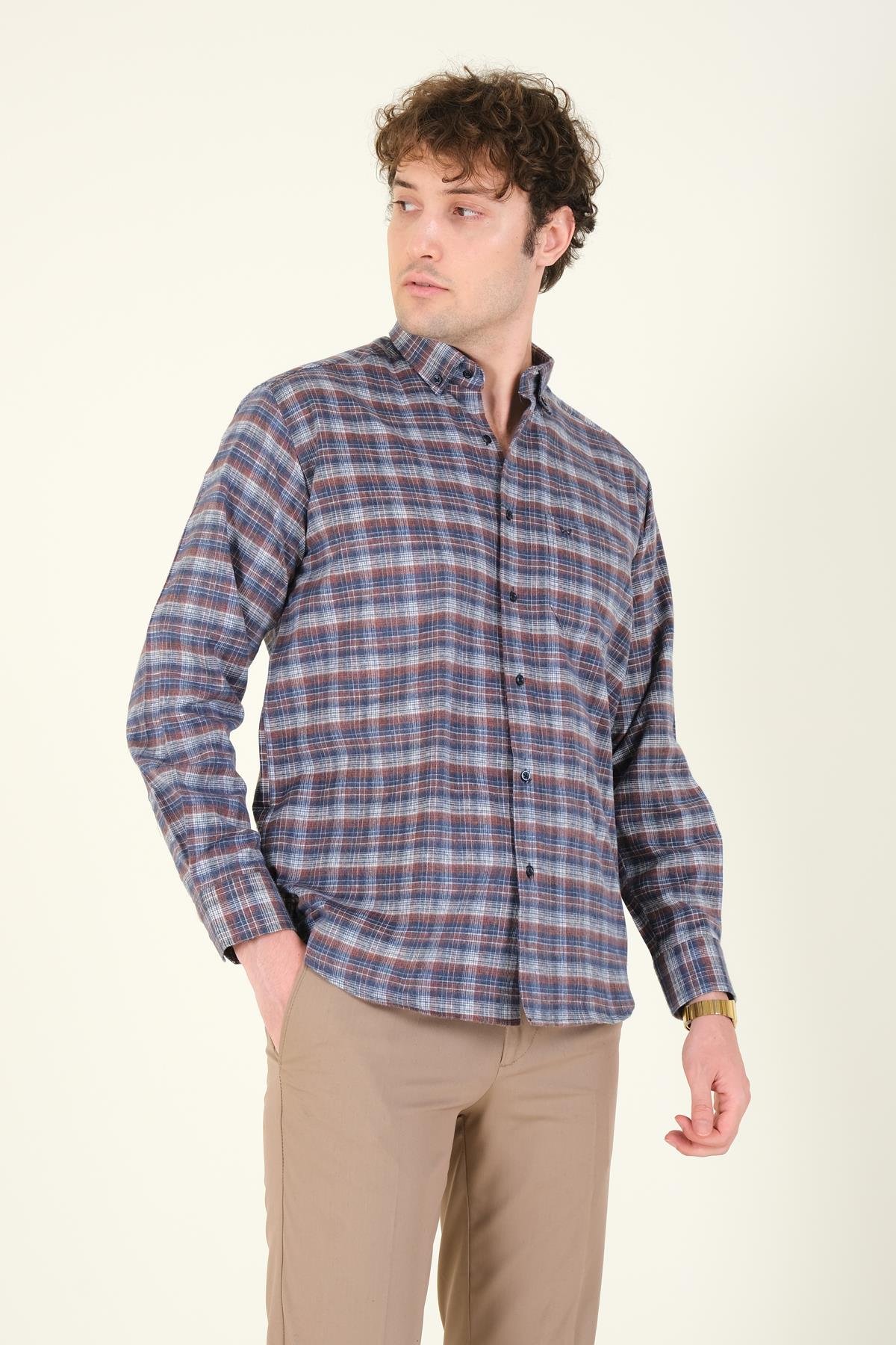 Erkek Tek Cep Ekose Desenli Kışlık Gömlek İndigo