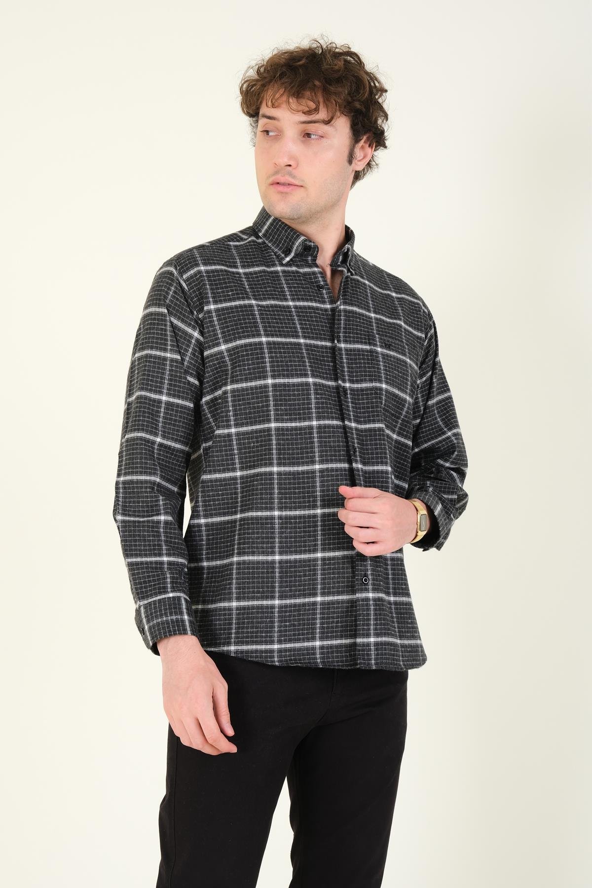 Erkek Tek Cep Ekose Desenli Kışlık Gömlek Siyah