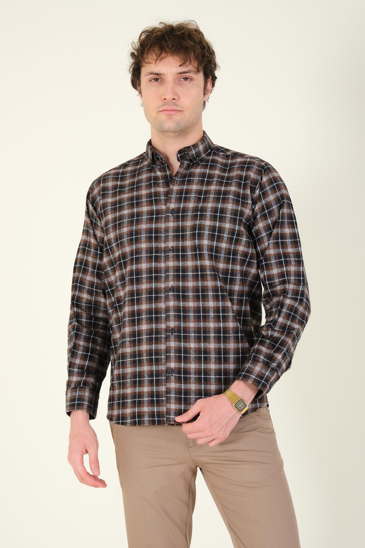 Erkek Tek Cep Ekose Desenli Kışlık Gömlek Taba
