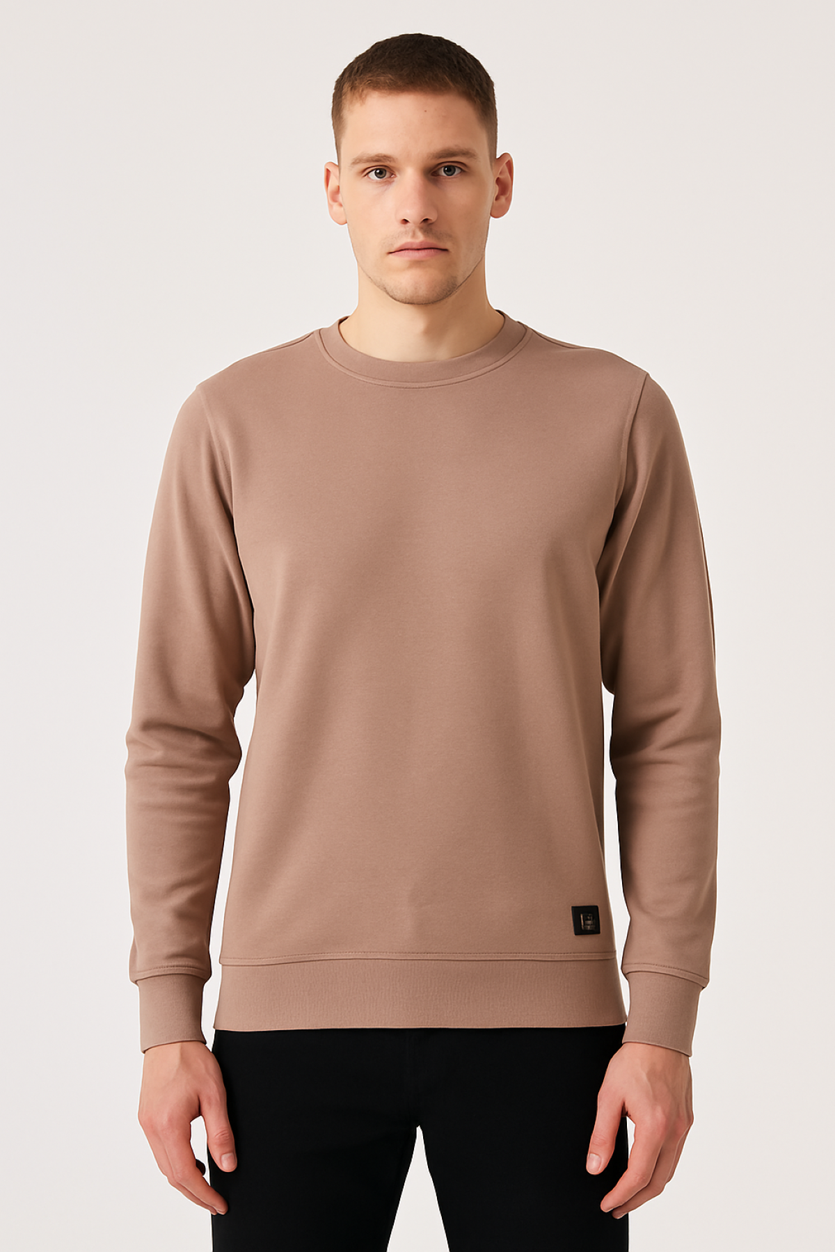 Erkek Üç İp Şardonsuz Sweatshirt Camel (4420000359315)