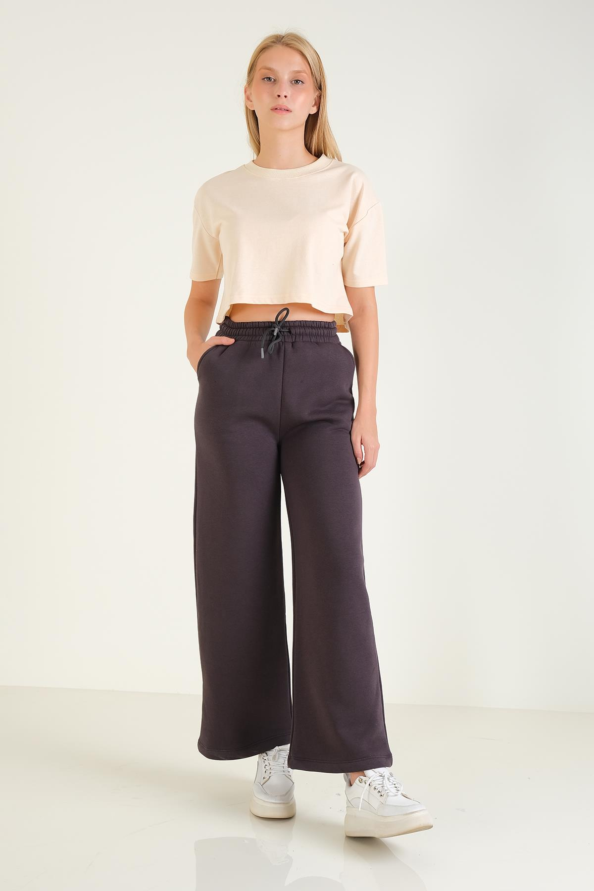 Kadın 3 İp Şardonlu Eşofman Altı Füme
