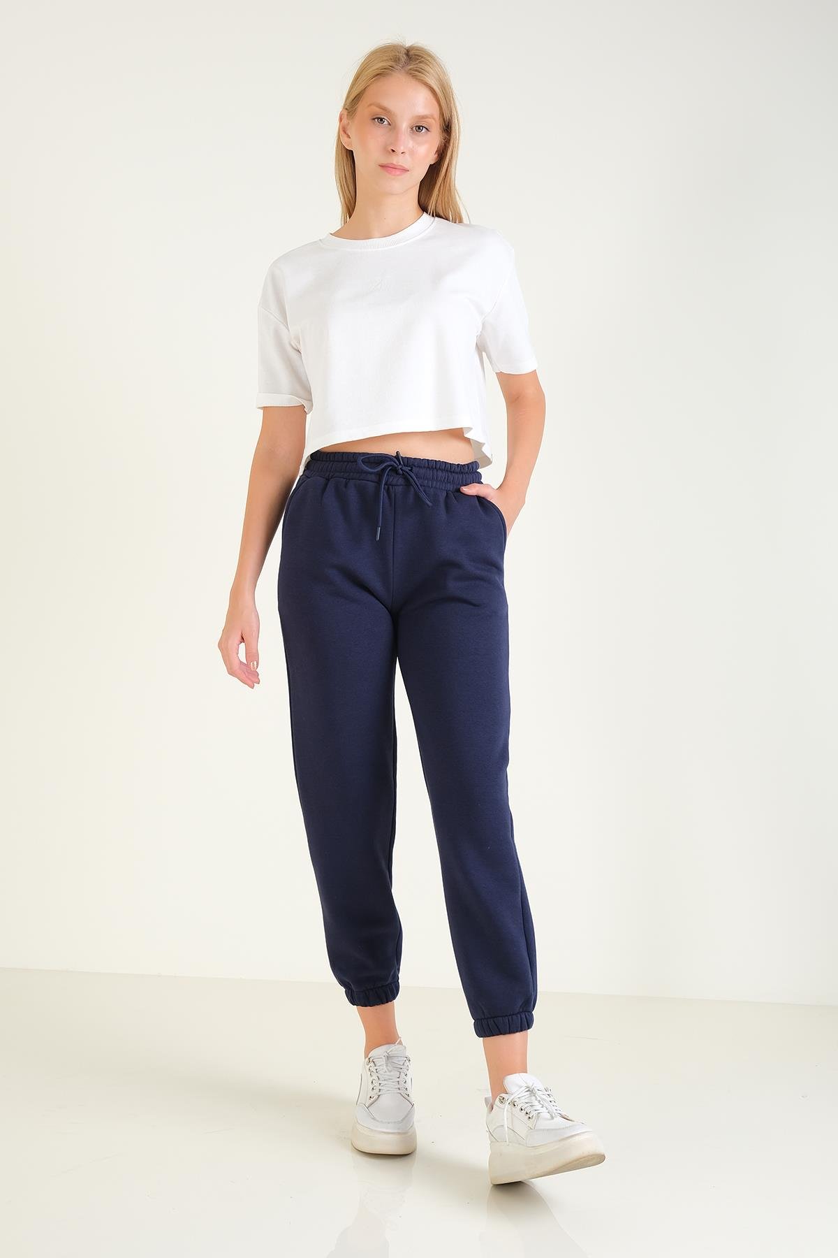 Kadın 3 İp Şardonlu Paça Lastikli Eşofman Altı Lacivert (4420000259875)