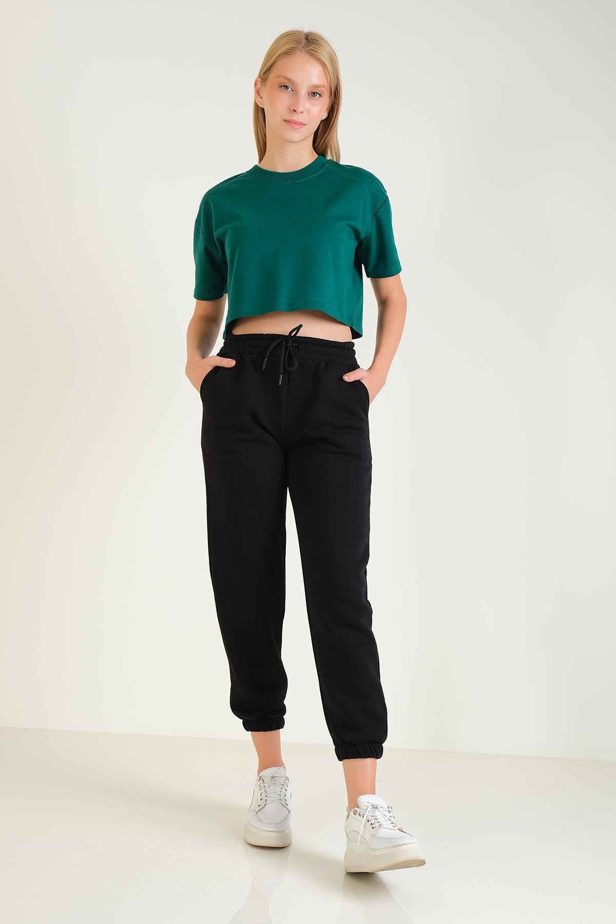 Kadın 3 İp Şardonlu Paça Lastikli Eşofman Altı Siyah