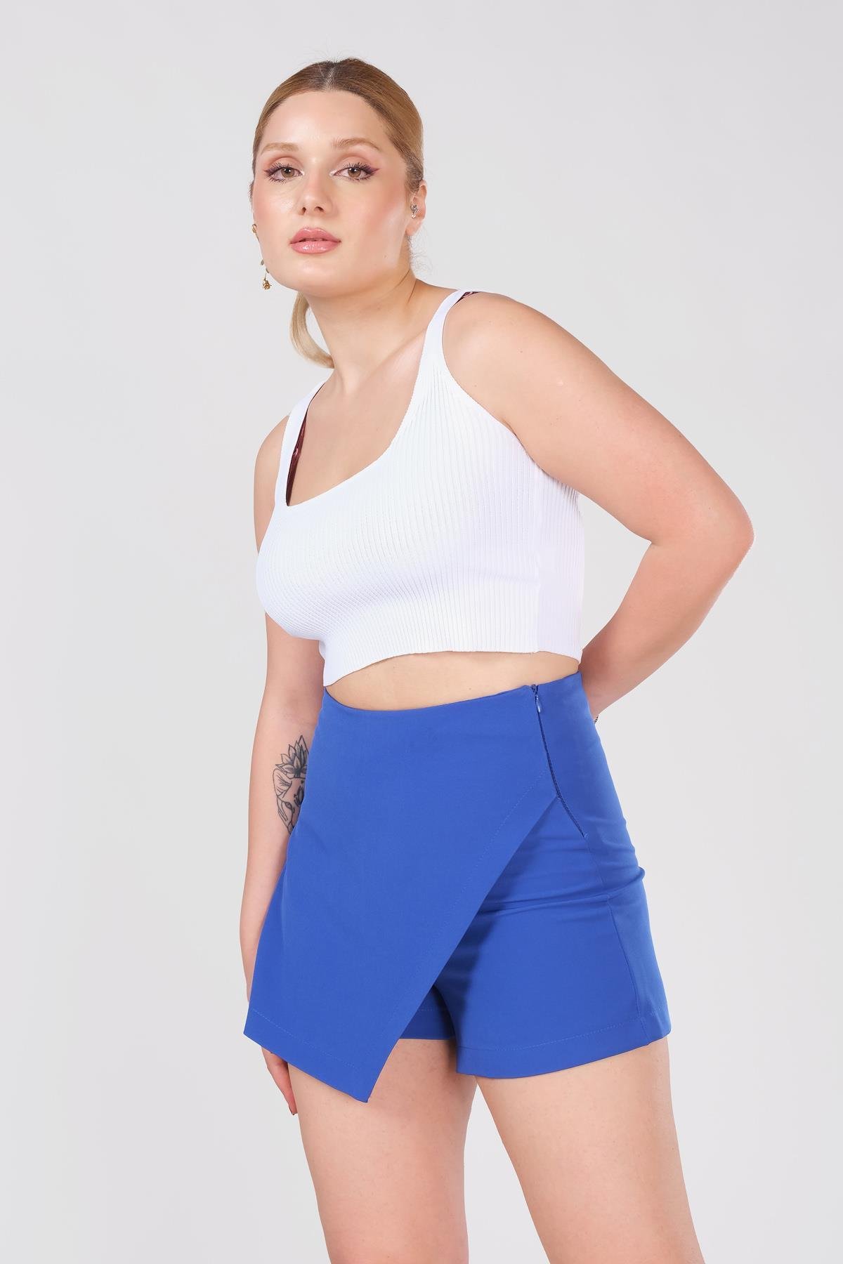 Kadın Asimetrik Kesim Şort Etek Saks Mavi (4420000225993)