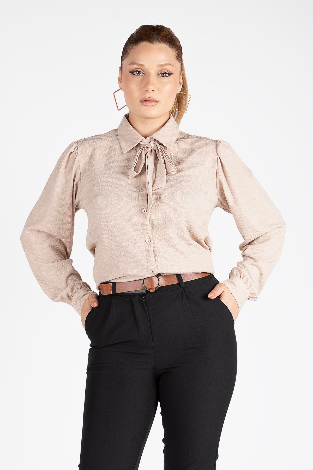 Kadın Bağlamalı Gömlek Vizon