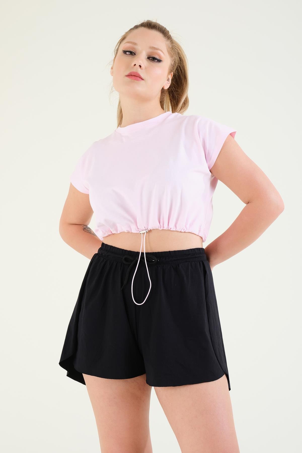 Kadın Bel Lastikli Crop T-Shirt Pembe (4420000242365)
