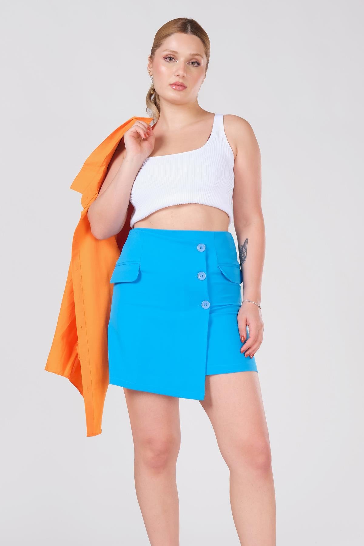 Kadın Cep Detaylı Etek Mavi (4420000225573)