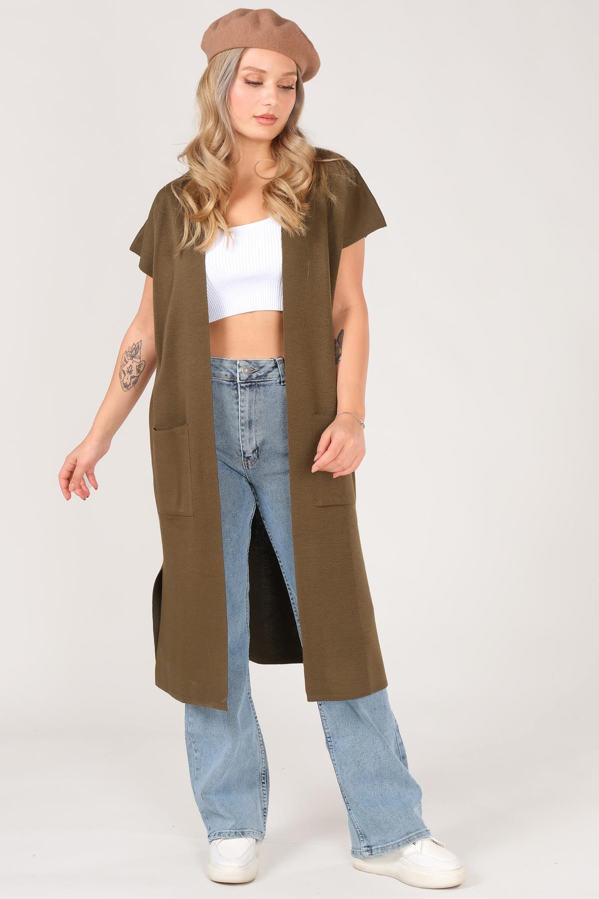 Kadın Cep Detaylı Triko Yelek Haki (4420000216540)