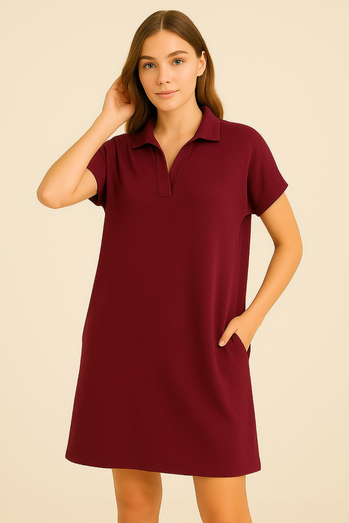Kadın Cepli Polo Yaka Elbise Bordo (4420000358998)