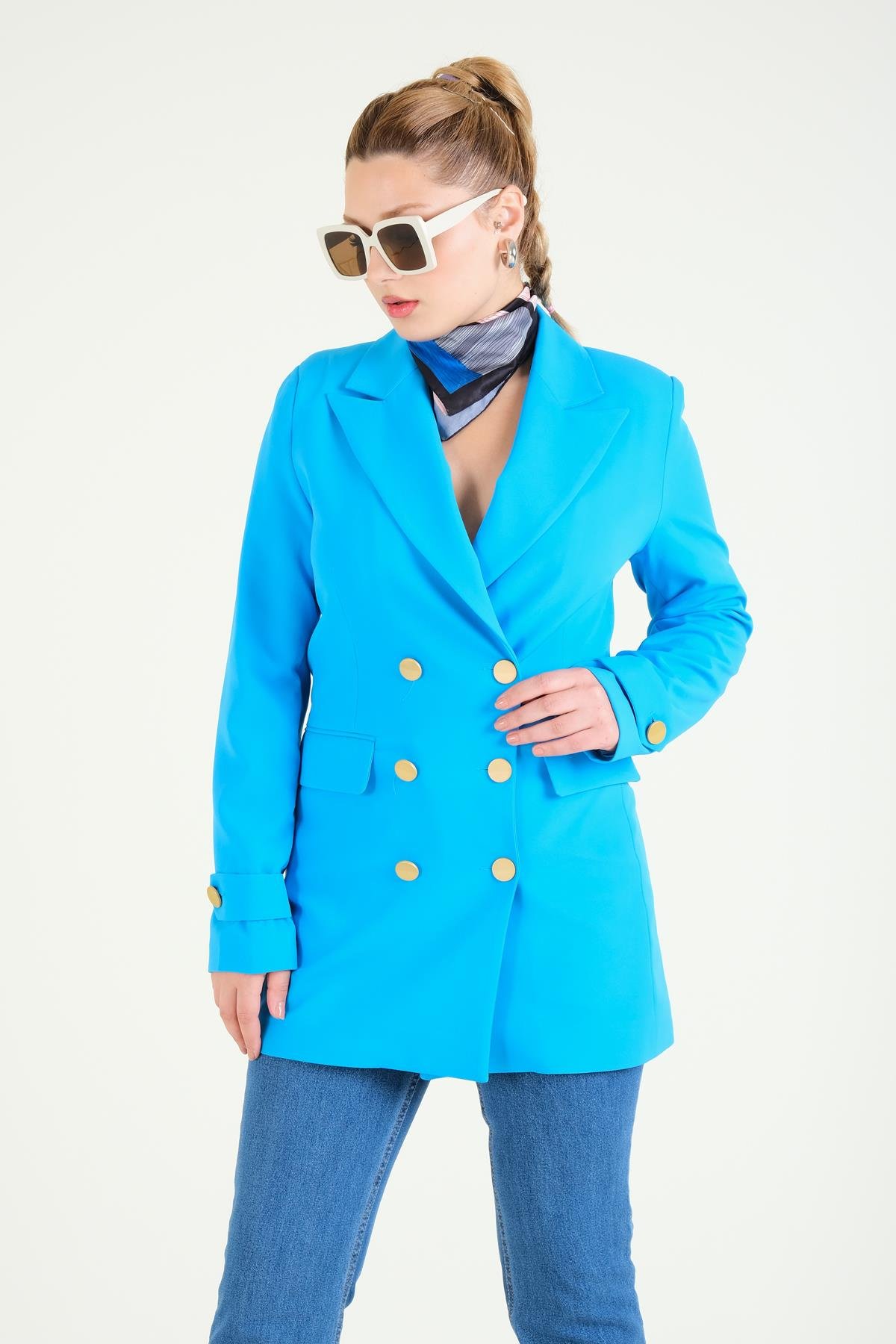 Kadın Düğme Detaylı Kruvaze Ceket Mavi (4420000247049)