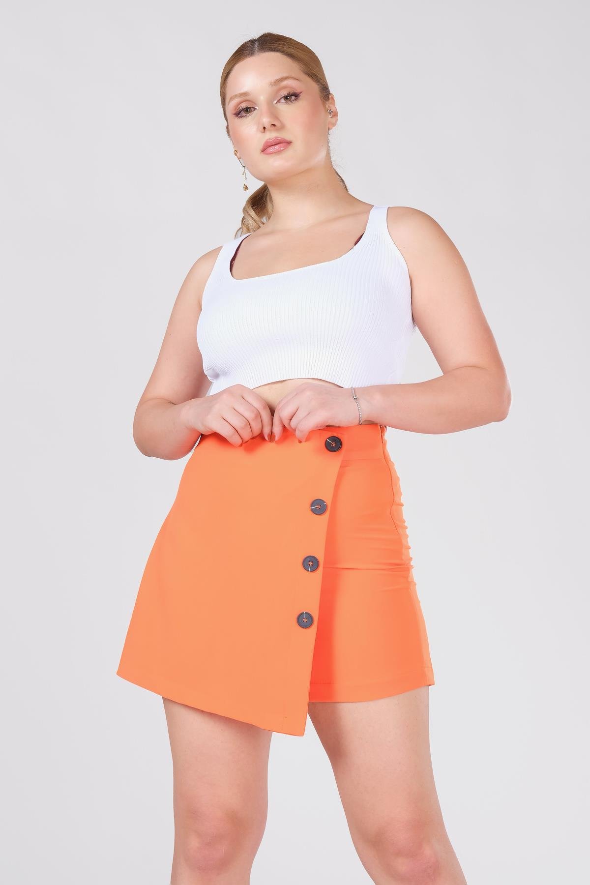 Kadın Düğme Detaylı Şort Etek Turuncu
