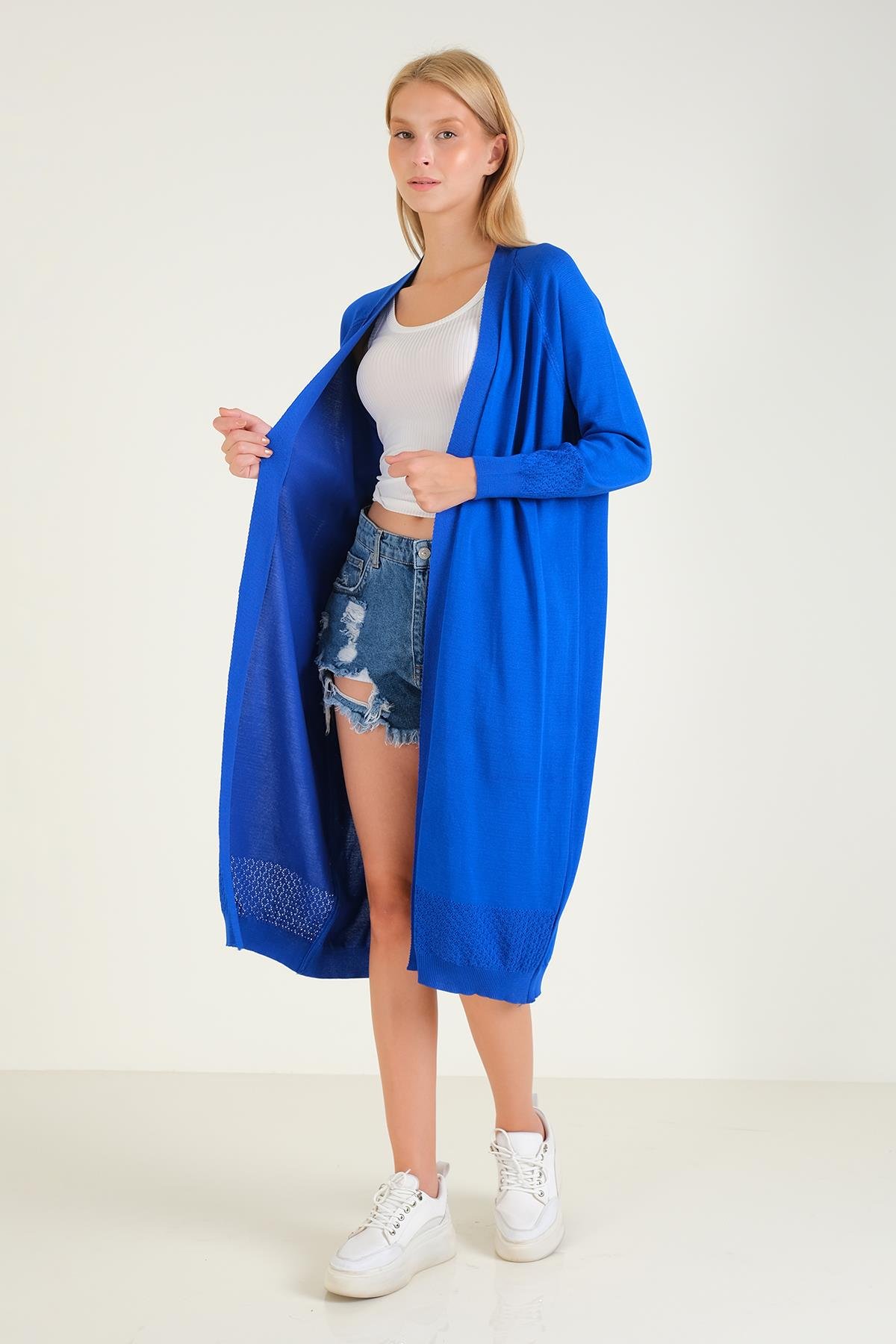 Kadın Kol Ve Etek Ucu Desenli Uzun Hırka Saks Mavi