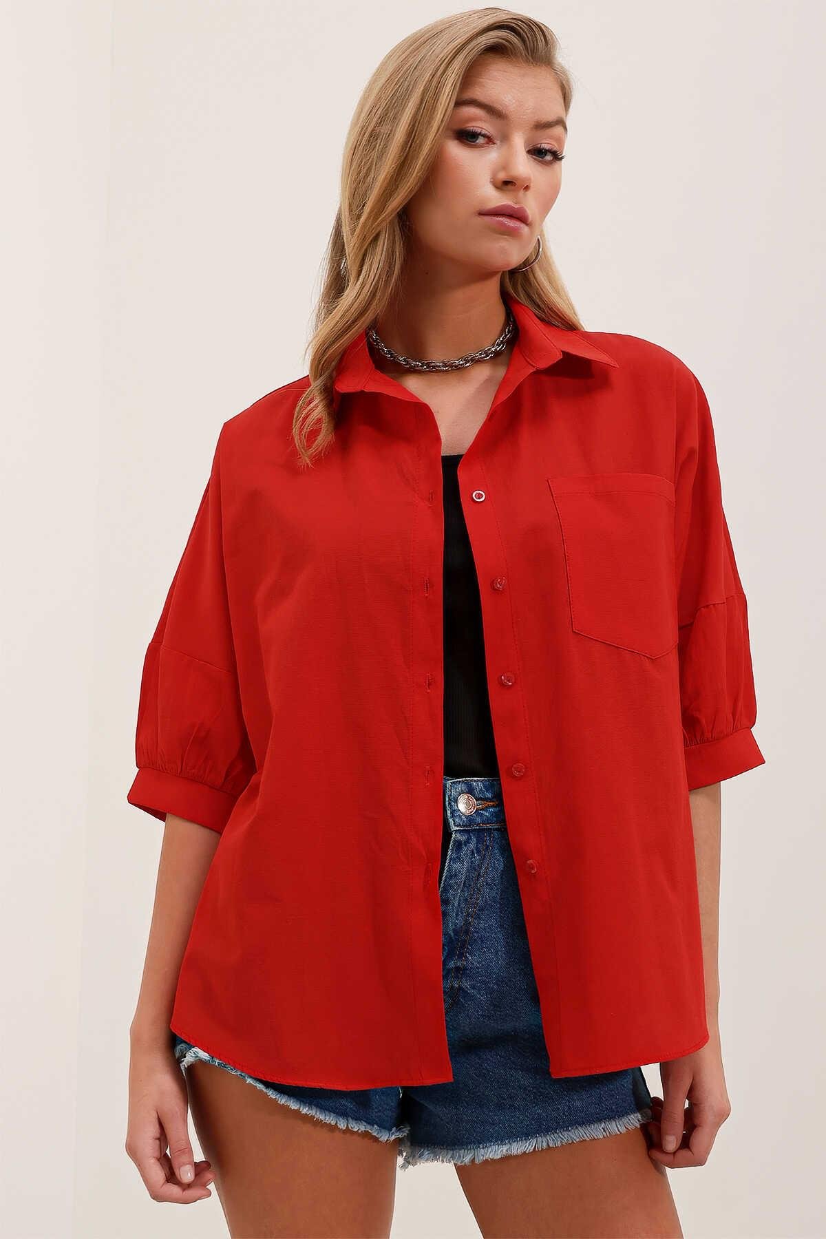 Kadın Overize Kısa Kol Gömlek Kırmızı (4420000240279)