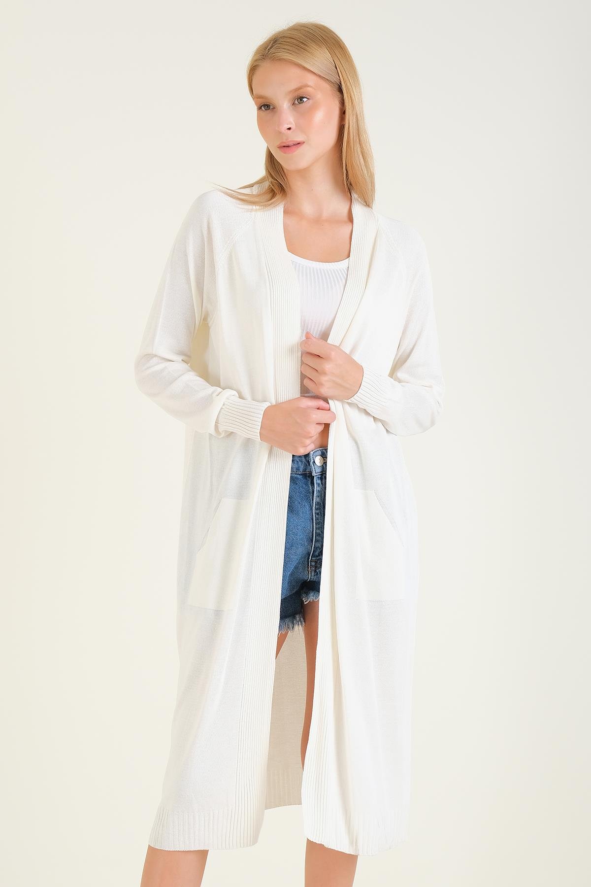Kadın Oversize Cepli Uzun Hırka Ekru (4420000260642)