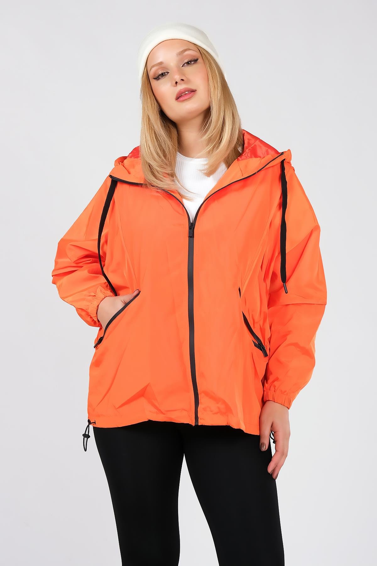 Kadın Paraşüt Kumaş Kapüşonlu Yağmuluk Turuncu (4420000229847)