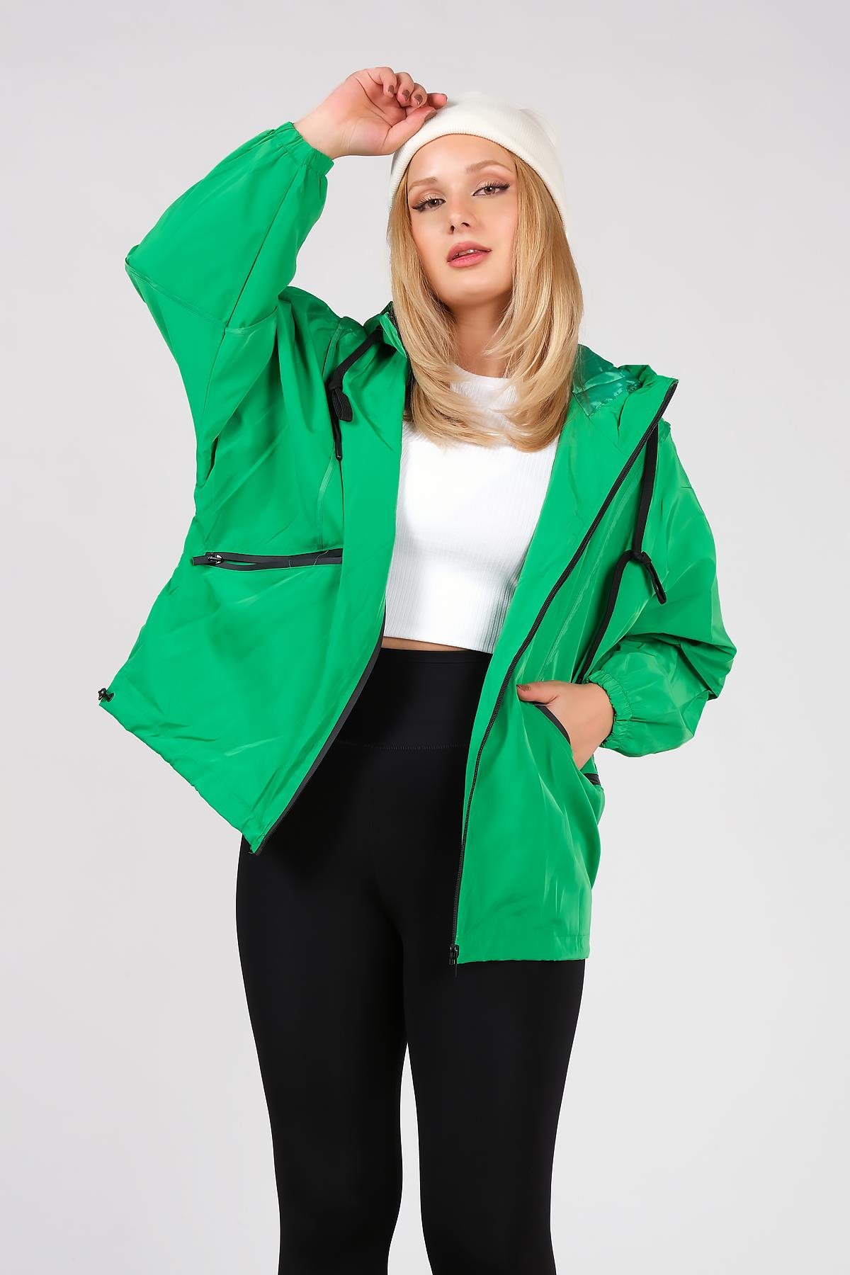 Kadın Paraşüt Kumaş Kapüşonlu Yağmuluk Yeşil (4420000229878)