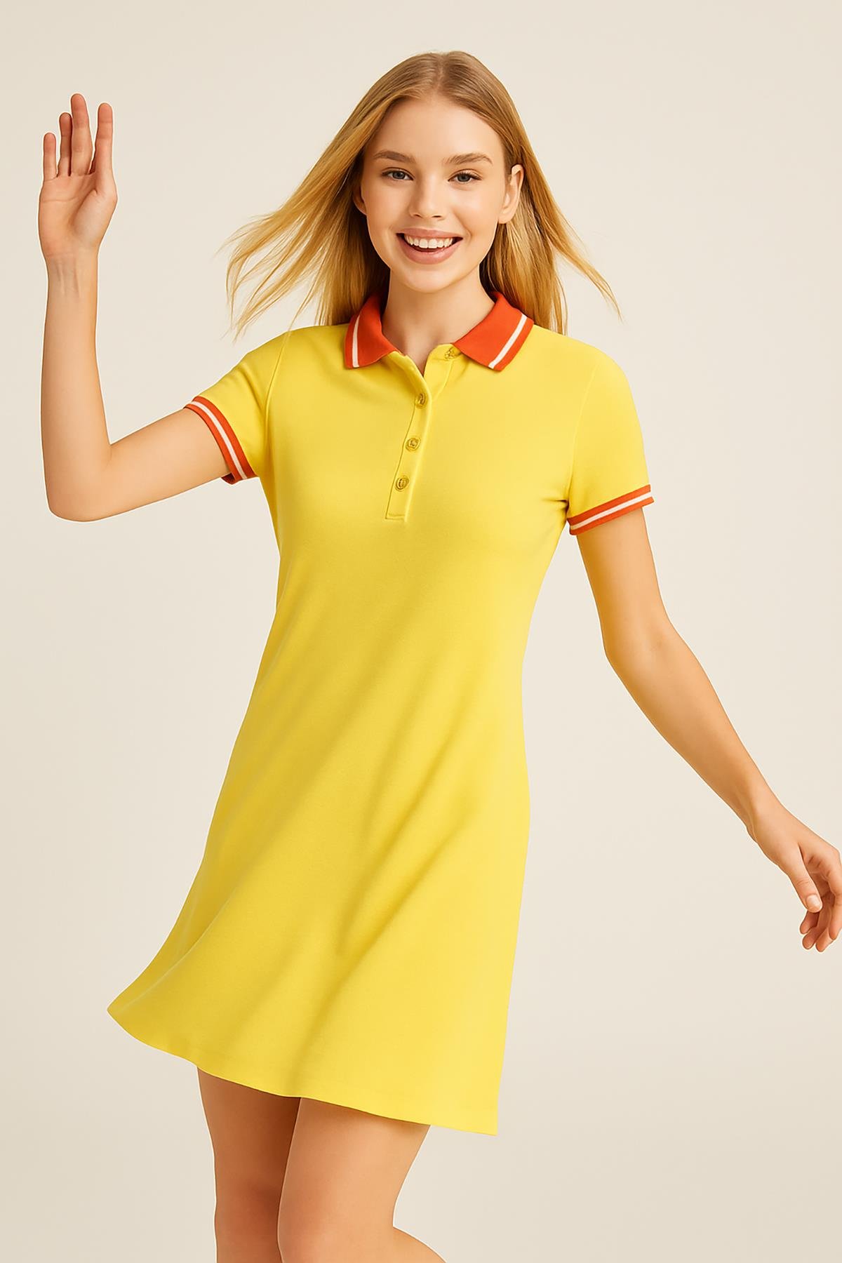 Kadın Polo Yaka Kısa Kol Elbise Açık Sarı