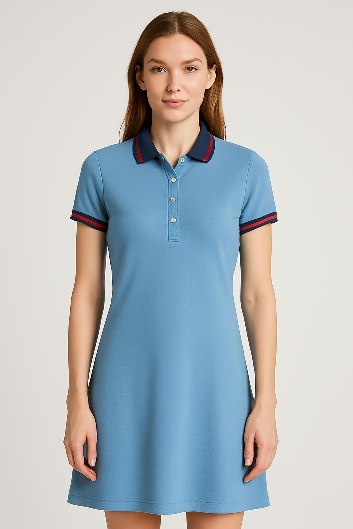 Kadın Polo Yaka Kısa Kol Elbise İndigo (4420000261922)