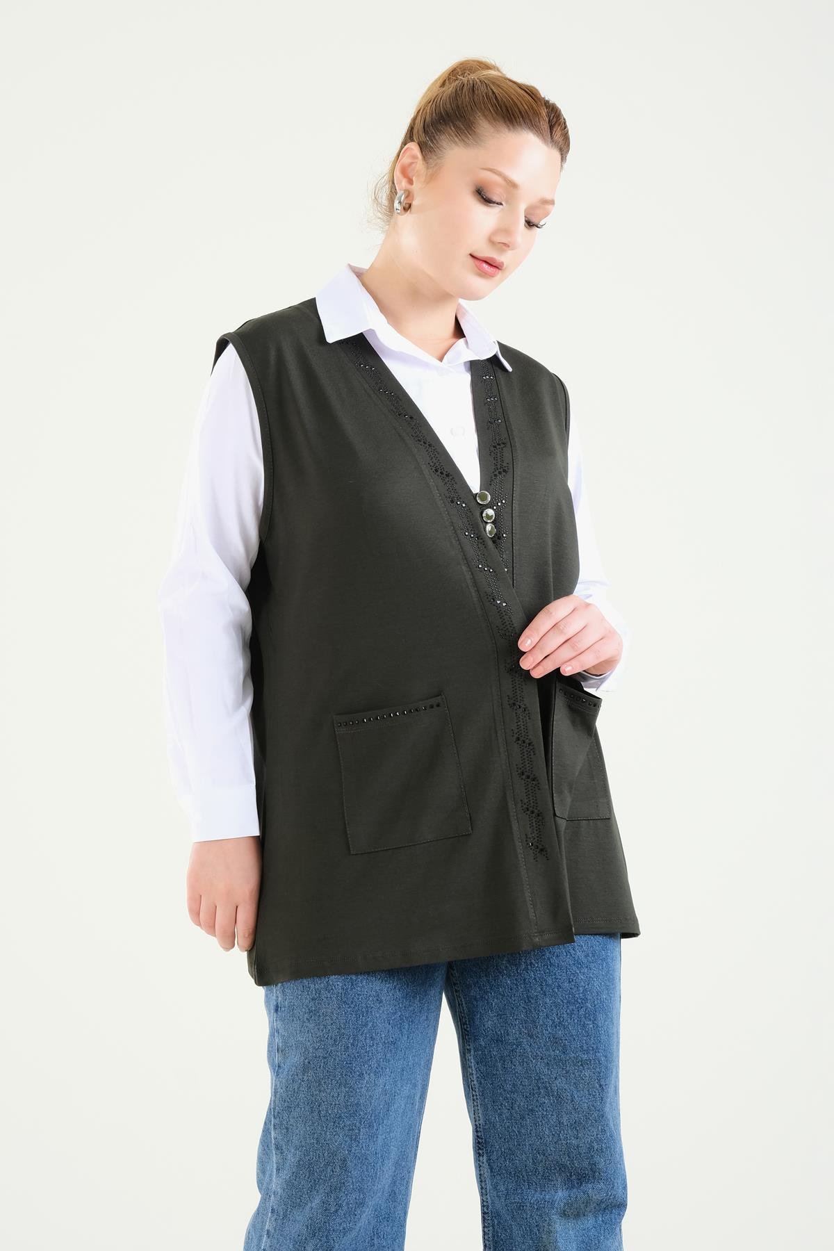 Kadın Üç Düğmeli Penye Hırka Haki (4420000245595)
